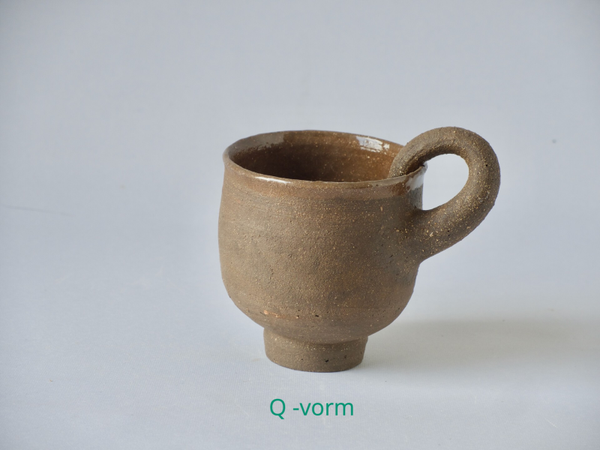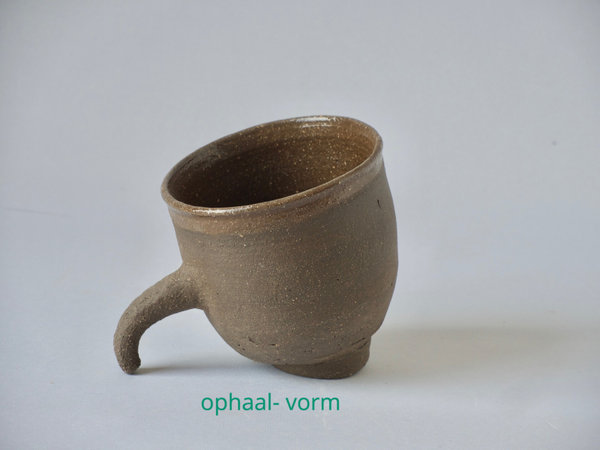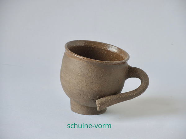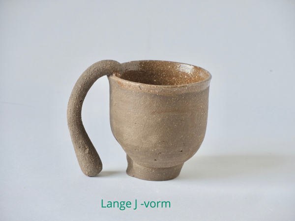 grote keramische bekers met verschillende soorten fantasie oren ,gemaakt van zwarte steengoed klei, geschikt voor de vaatwaser.
